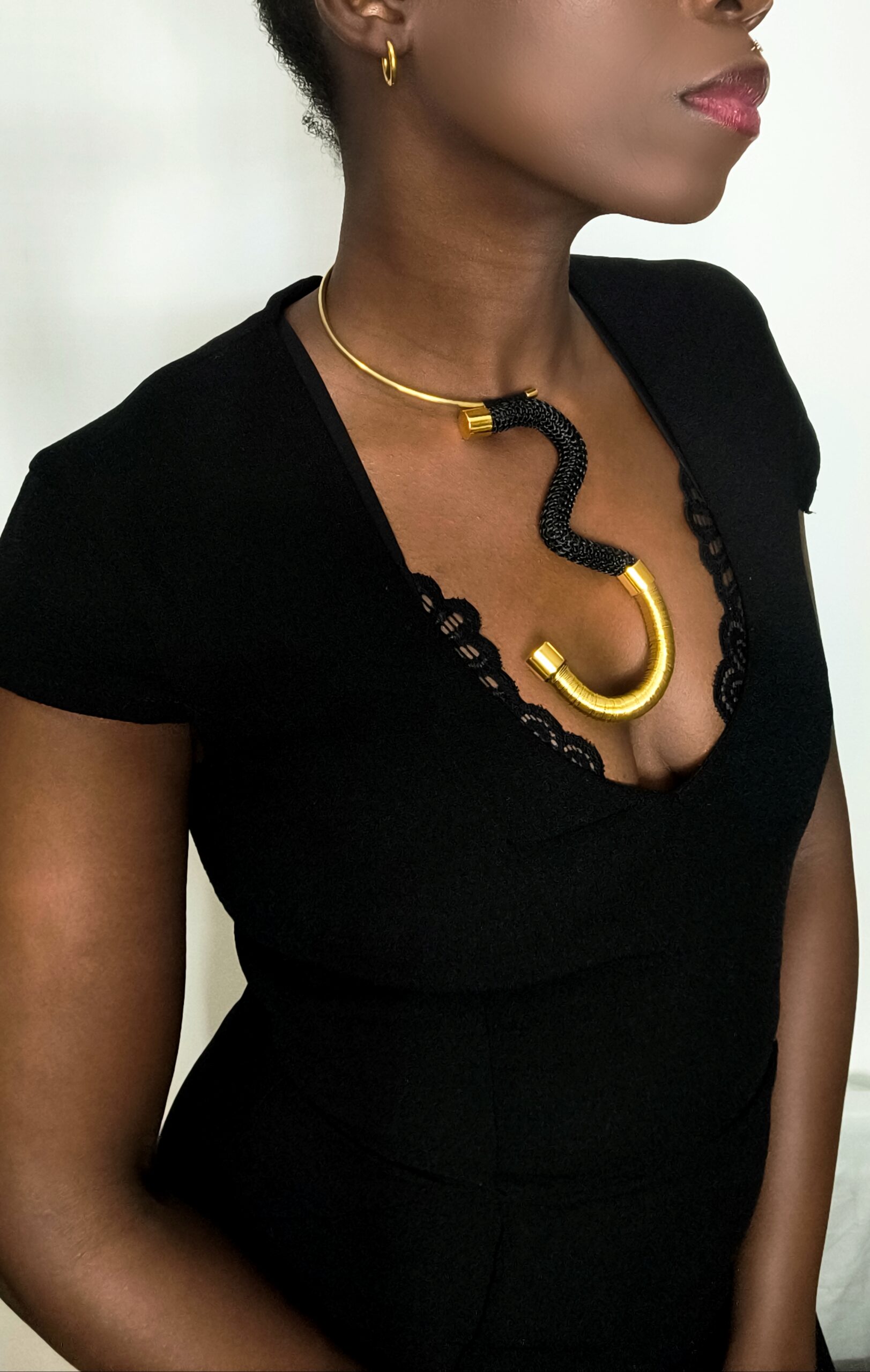 Une ondulation serpentine, un design résolument original et contemporain, le Mi collier DJAAN(serpent en langue Wolof) est définitivement THE accessoire à avoir pour apporter la touche maîtresse à votre tenue.